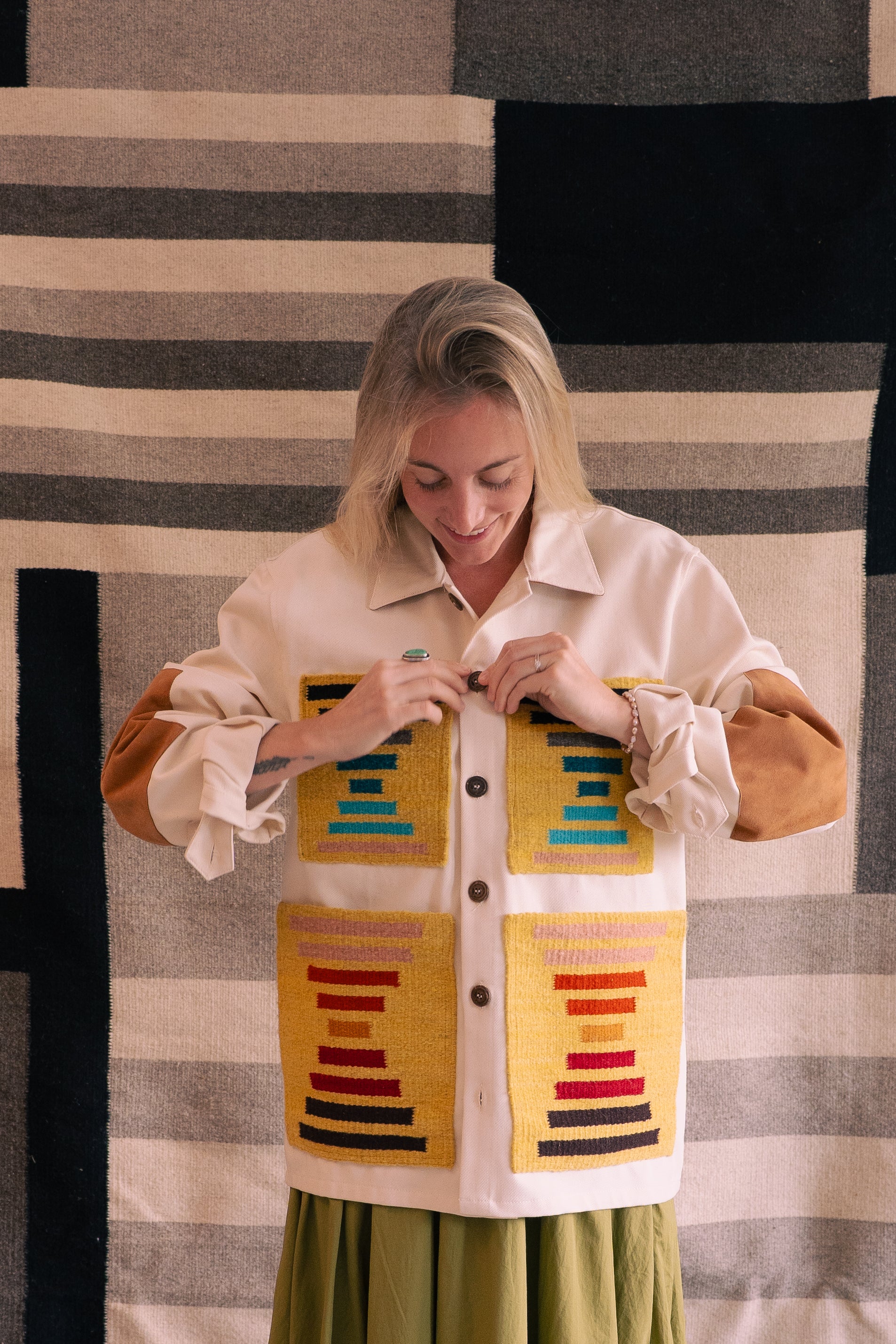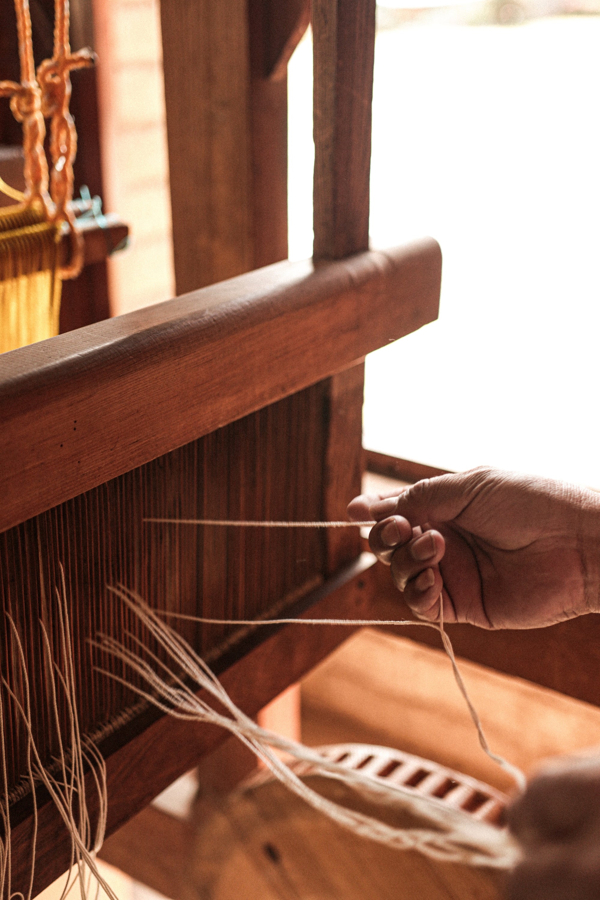 When we say "handmade", this is what we mean - Working on traditional wooden foot pedal looms, each warp thread & every shuttled weft is artfully woven together by practiced hands. Generations of craftspeople inform every step in the process.