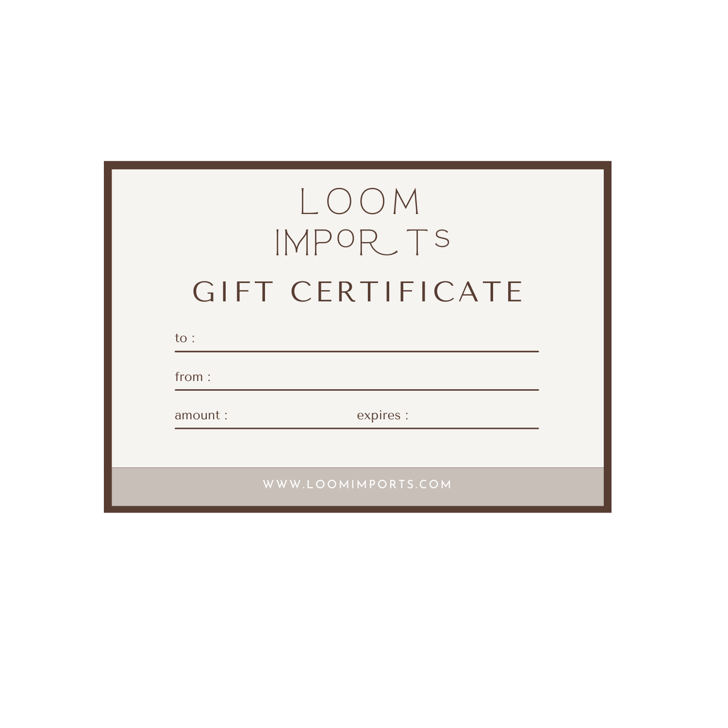 or send any combination of these details to: info@loomimports.com